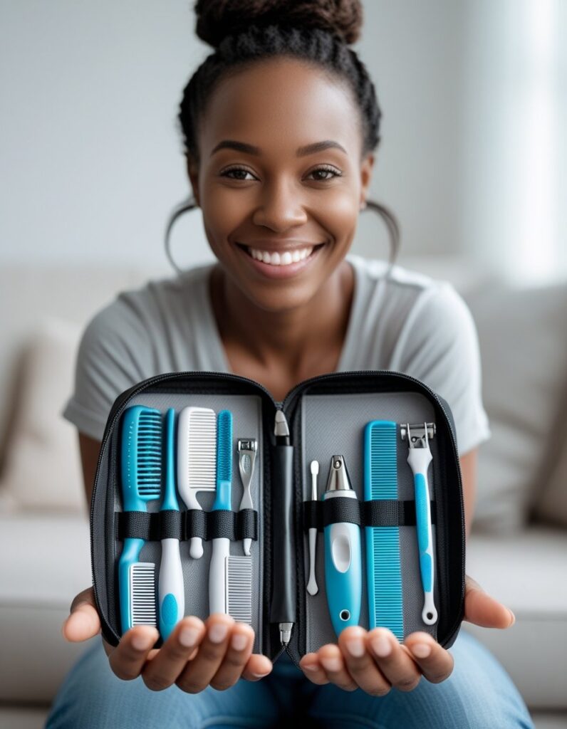 Travel kits often contain compact grooming tools. These are perfect for maintaining hygiene during trips or outdoor adventures. Items like foldable brushes, mini shampoo bottles, and nail trimmers fit easily into travel bags.