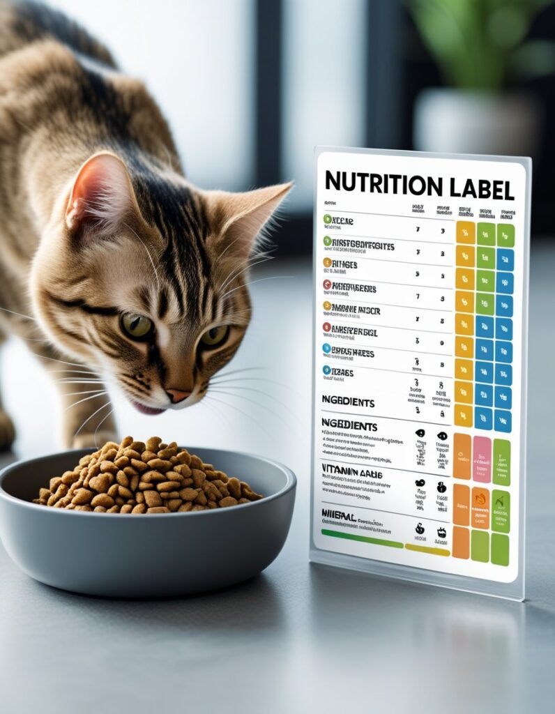 Choose foods with about 30–35% protein and moderate fiber levels. This helps prevent both obesity and constipation — two common issues in indoor felines.