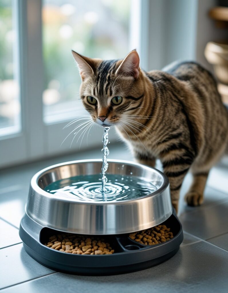 Cats who eat mostly dry food often don’t drink enough water. This can lead to urinary tract issues or kidney strain over time. To help, ensure fresh water is always available.
