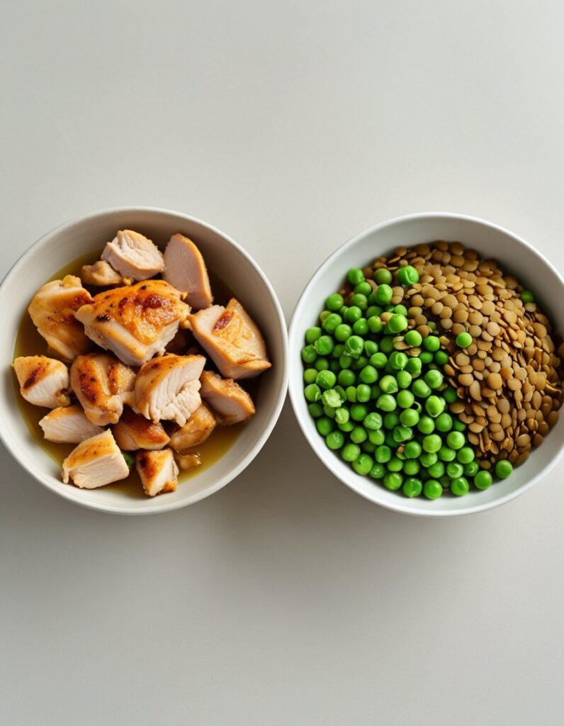 Plant proteins like peas or lentils can be useful supplements but shouldn’t be the primary protein source. Dogs digest animal proteins more efficiently, so they get more benefit from smaller portions.