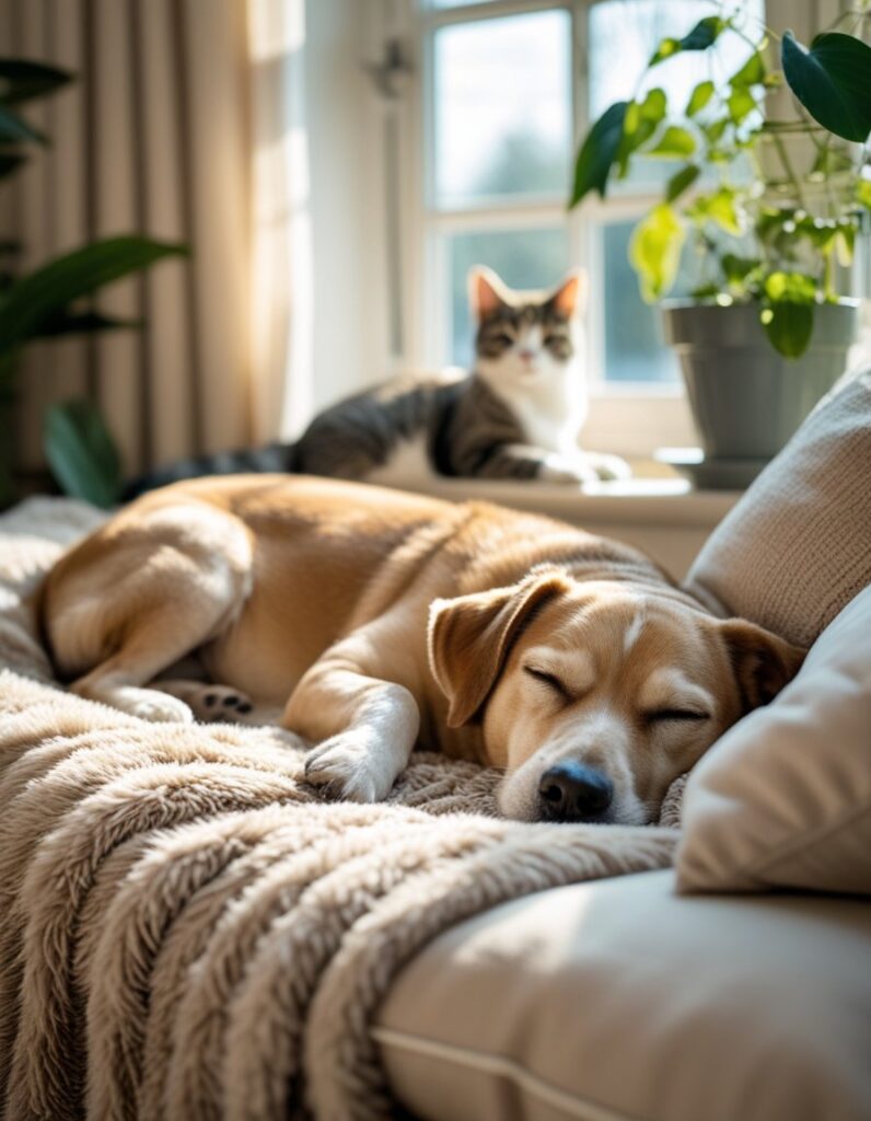 Cats enjoy high perches and hiding spaces. Dogs prefer cozy beds in familiar locations. Reducing stress helps prevent behavioral issues and supports emotional health.