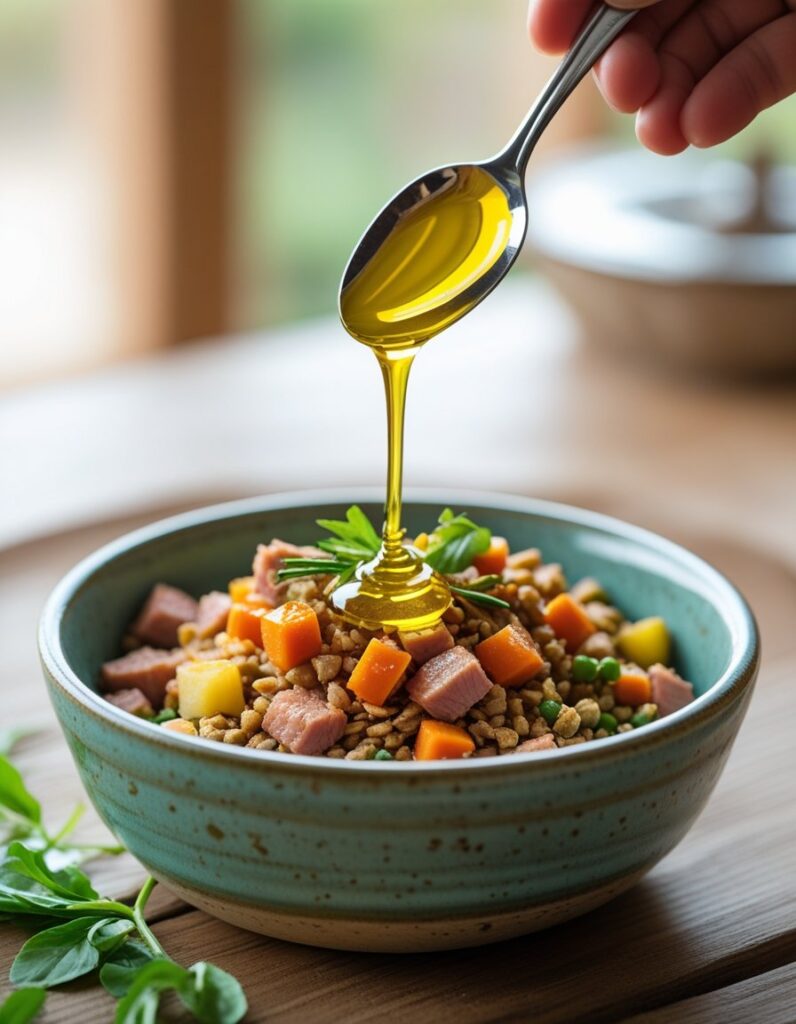 Add small amounts of these oils to your dog’s homemade meals. They not only enhance flavor but also help improve nutrient absorption and skin barrier strength.