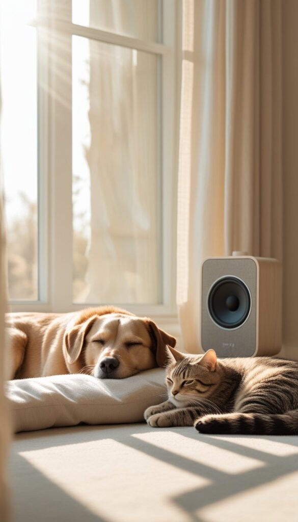 For cats, quiet and gentle tones help them feel at ease. For dogs, calming music can reduce barking and restlessness during storms or when left alone.