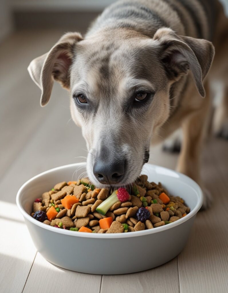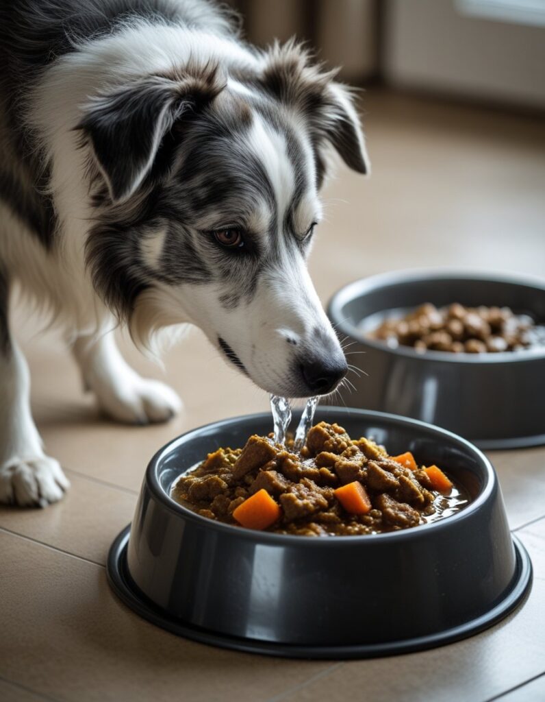 Dehydration is common in senior dogs, especially those eating only dry kibble. Moisture-rich foods like wet food or kibble topped with warm water can make a big difference in kidney and joint health.
