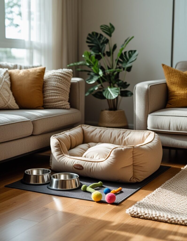 A safe home makes the adjustment easier for your new pet. Start by choosing a quiet resting spot away from loud areas. Many pets feel anxious during their first week, so a calm environment helps them settle faster. Remove small objects that can be swallowed and secure loose wires.